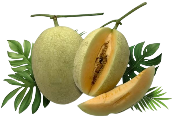 White Kirin Melon is a premium melon with greenish-white to clean white skin, giving it an elegant and exclusive appearance. White Kirin has soft, juicy flesh with a refreshing sweetness and a sugar level of around 13–16° Brix.